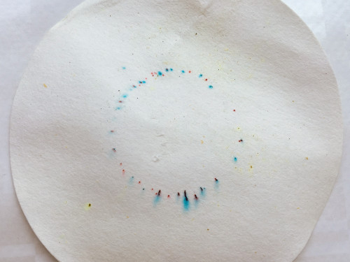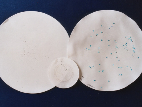 Hier sehen Sie das trockene Filterpapier mit den entwickelten Farbpunkten.